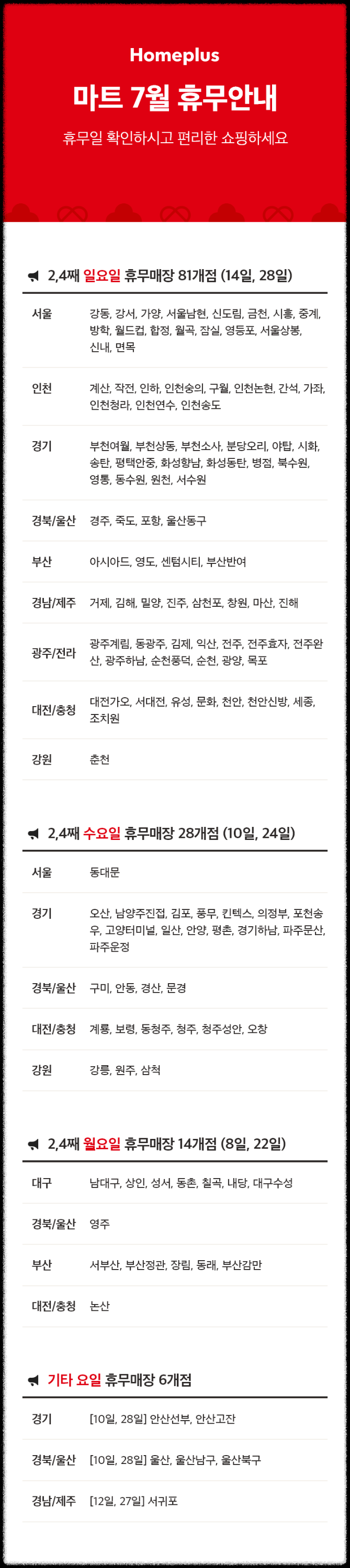 - 전국 홈플러스 7월 휴무일 및 영업시간 안내